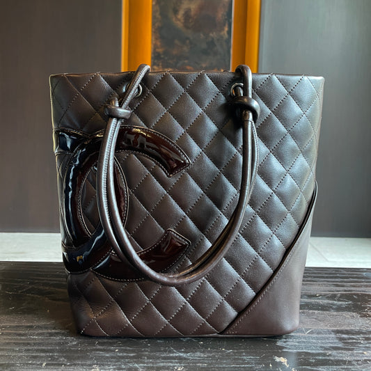 017 シャネル マトラッセラムスキンカンボンラインミディアムトート ブラウン