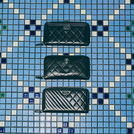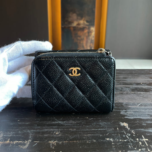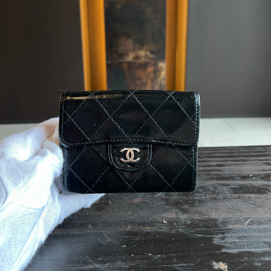 009 シャネル マトラッセキャビアスキンコンパクトウォレットブラック