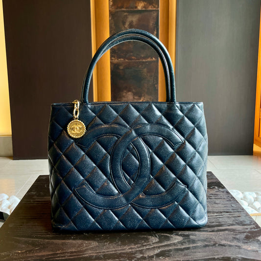 018 シャネル ヴィンテージマトラッセキャビアスキン復刻トートバッグ ネイビー1998~1999年