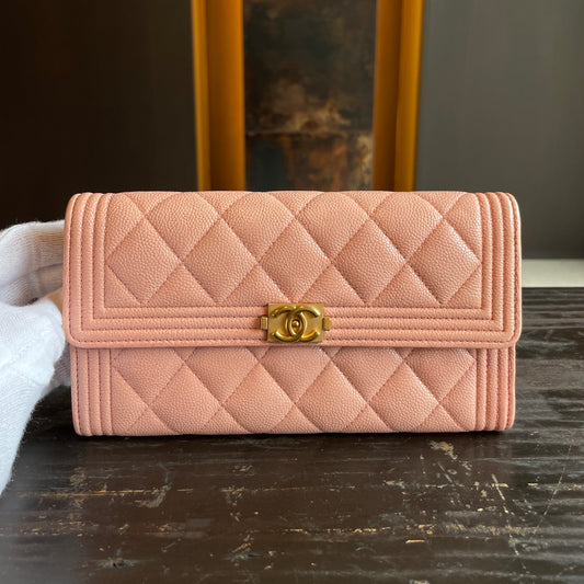 003 シャネル マトラッセキャビアスキン ボーイシャネル長財布ピンク