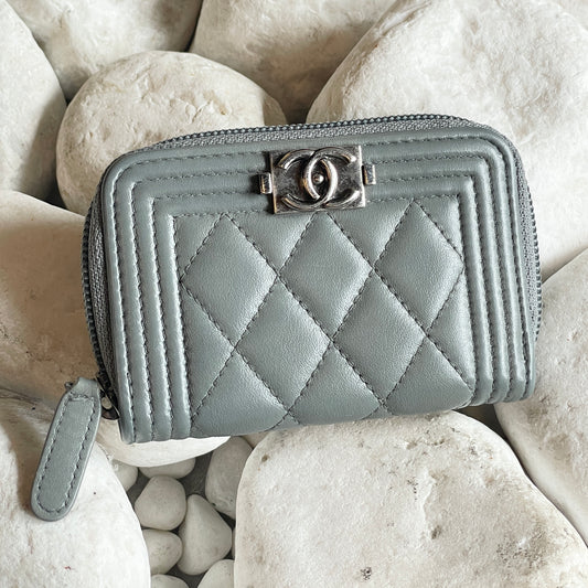 011 シャネル マトラッセラムスキンボーイシャネルコインケース/カードケース グレー