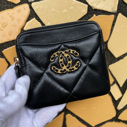 002 シャネル マトラッセラムスキン 19 コインケース/カードケース ブラック