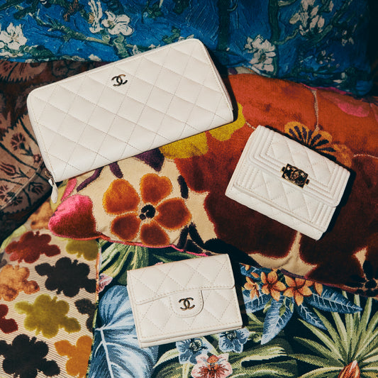 024 シャネル ヴィンテージマトラッセキャビアスキン 三つ折り ホワイト1992~1994年